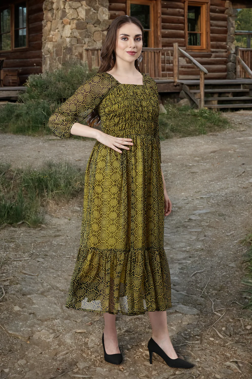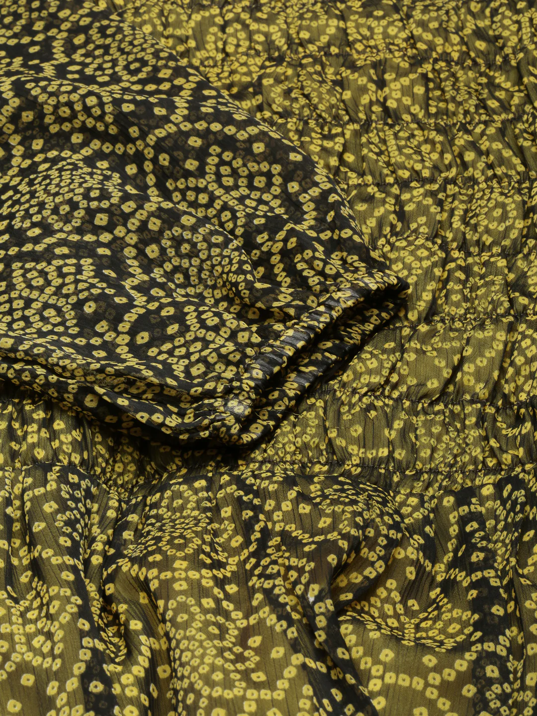 Celebrate heritage with a modern twist in Black and Yellow Bandhani Printed Ethnic Dress. Rooted in tradition yet styled for today, this fit & flare silhouette features an all-over Bandhani print that adds a vibrant, artisanal touch. Designed in a breathable fabric with a flattering smocked bodice, it’s your perfect blend of comfort and charm.