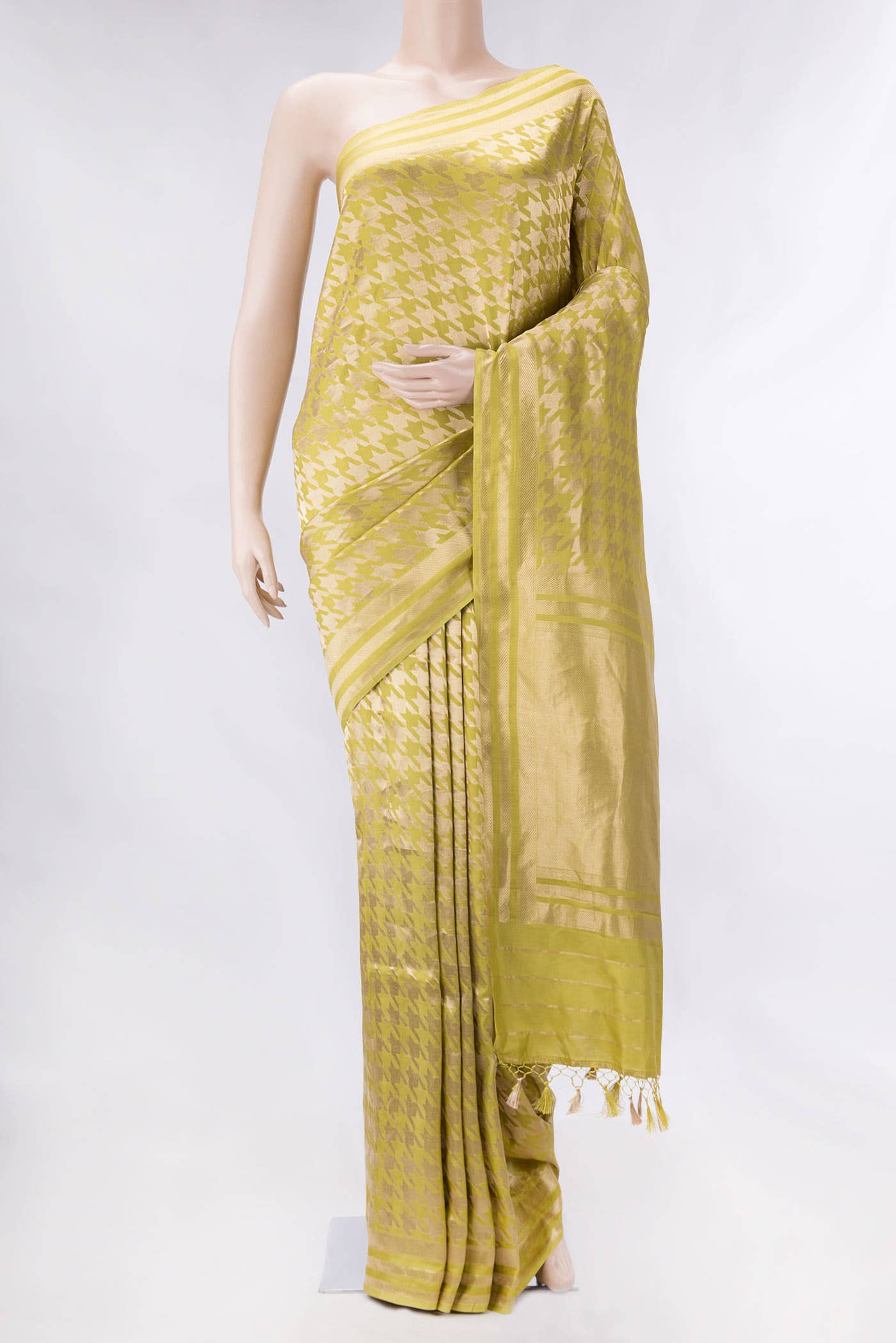 Mehandi Green Dual Tone Banarasi Silk Saree with Zari Brocade on the body and Zari Border.